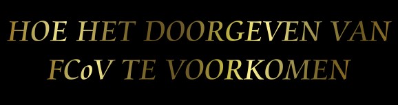 Hoe worden katten en kittens met FCoV besmet? FCoV is een erg besmettelijk virus, dat bijna alle katten besmet, die ermee in aanraking komen. De voornaamste infectiebron is de ontlasting van besmette katten, en niet besmette katten raken besmet door dezelfde kattenbak te gebruiken als besmette katten. Op de tweede plaats gebeurt de besmetting door onopzettelijke blootstelling van niet besmette katten aan hele kleine deeltjes van besmette ontlasting via schoenen of kleding, handen, kattenbakschepjes, enz. De kans is groot dat niet besmette katten vervolgens het virus binnen krijgen bij het wassen of wanneer er ontlasting in hun voer terechtkomt. FCoV wordt soms, in een vroeg stadium, uitgescheiden via het speeksel, en dus kan ook het delen van etensbakjes of het inademen van niesdruppeltjes leiden tot besmetting. Nauw contact met besmette katten, bijvoorbeeld door elkaar te wassen, kan, hoewel zelden, ook leiden tot besmetting. Feline coronavirus wordt bijna nooit overgedragen via de placenta. De meeste kittens, die de besmetting oplopen, krijgen deze nadat de bescherming door middel van de antistoffen die ze via de moedermelk hebben binnengekregen, is uitgewerkt, meestal op een leeftijd van 5-7 weken Welke uitscheidingsprodukten bevatten het FCoV? FCoV wordt voornamelijk uitgescheiden via de ontlasting en slechts heel zelden via het speeksel. Tot op heden zijn er geen redenen om aan te nemen dat FCoV aanwezig zou zijn in traanvocht of urine.