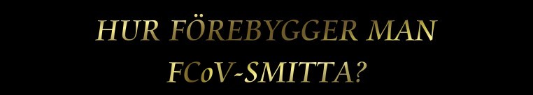 till ett annat hushåll. Det är för närvarande en långsam process att identifiera bärarkatter (se Nyheter inom FCoV/FIP-forskningen). Vi måste fortfarande finna prover som kan identifiera bärare på livstid i ett tidigare skede så att vi kan hålla isär dem från andra katter, eller hitta ett sätt att stoppa dem från att utsöndra FCoV.... men dessa är ämnen för min framtida forskning. Hur kan man förhindra att FCoV kommer in hos en kattuppfödare eller i ett hushåll med katter när man väl är fri från FCoV Var försiktig så att du inte återinför viruset när dina katter väl är fria från FCoV. Testa alla nya katter eller kattungar för antikroppar mot FCoV med ett tillförlitligt antikroppstest, exempelvis University of Glasgow immunofluorescenstest (se länken till Companion Animal Diagnostics). Det verkar finnas många tillgängliga antikroppstest som inte har någon likhet med University of Glasgows test och att använda dem resulterar inte enbart i värdelösa resultat för dig, men kan också sätta dina katters liv på spel. Endast katter med ett antikroppsantal på noll borde tillåtas att komma in till ett hushåll som är fritt från FCoV. Försäkra dig om att du bara tar din hona för avling med hanar med antikroppsantalet noll och att endast honor med antikroppsantalet noll kommer till din hane (kontrollera i registret över hanar och honor som testats för coronavirus). När du tar semester vore det bättre om någon kom hem för att mata dina katter än att placera dem i ett katteri. Kontrollerad parning – där katterna inte kommer i kontakt med varandras avföring eftersom de inte delar sandlåda – är tryggare än att helt enkelt låta dem dela hage i ett par dagar. Att sätta din katt i karantän efter riskfyllt sex, ett besök till ett katteri, en utställning eller hos veterinären. Om du beslutar dig för att avla din negativa katt med en katt som har antikroppar mot FCoV eller om din katt har varit på en utställning, i ett katteri eller har behövt stanna i veterinärens utrymmen, placera då katten i karantän hemma under två veckors tid och testa honom eller henne för FCoV-antikroppar för att försäkra dig om att katten är negativ igen innan du återförenar den med dina andra katter. Kan jag besöka min vän vars katter har