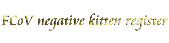 To register your kittens, send your name; address; phone number; fax number; email address; details of the kittens, such as what breed they belong to, their dates of birth, sex, etc. Importantly send evidence of your FCoV negative antibody or RT-PCR tests. You can have as many or as few contact details as you wish displayed on the website, though including at least your county and country would be a good idea. You can send other relevant information, for example, you may also indicate whether your household is FeLV and FIV free or what championships the kittens parents may have won.